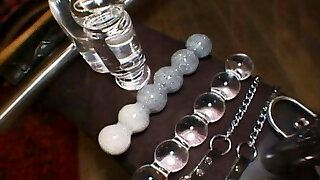 Wrecked ample brunette MILF gets her anus stuffed with plugs and weights