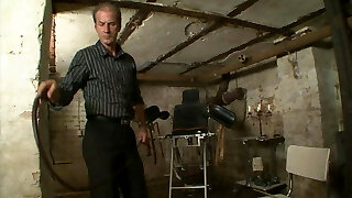 Nerdy brunette Roxanne Rae gets punished in the cold basement