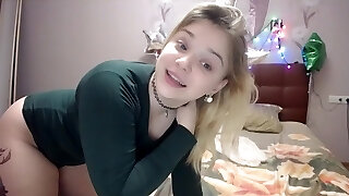 superbe teen blonde enlève ses collants sur webcam