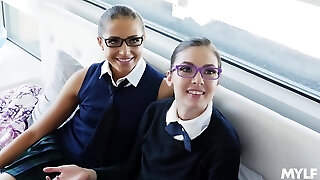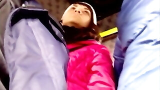 Ragazze dolce far finta di non vedere l'uomo masturbarsi cazzo nel bus