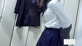 Asian bombshell strips and masturbates