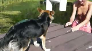 A horny German lady sitting on her gimps's face at the beach