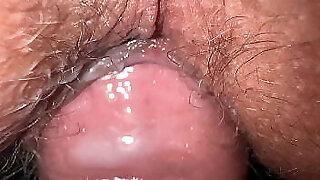 White Pearly pussy is full of cum. Cum flows through sweet panties