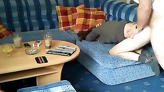 Ugly old bitch gets her extremely hairy butthole fucked firm on sofa