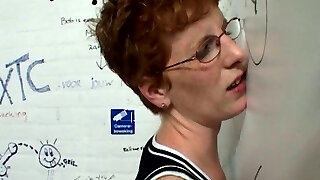 Ugly 4 eyed woman sucks the dick through the gloryhole