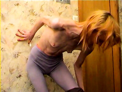 petite cruche blonde platine obtient ses coupures tirées vers le bas a des bas fucky-fucky