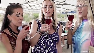 fellation au bord de la piscine et baise sur le canapé-trio de milf excitées