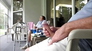 véritable flash de bite publique. la femme de chambre de l'hôtel me regarde me branler. belle-mère