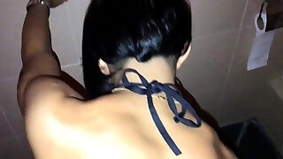 jolie fille blanche brune clignote son cul dans les toilettes