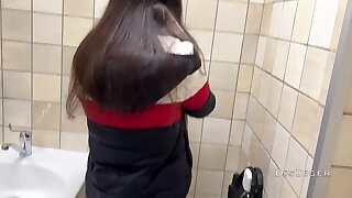 Sexy Cherie quickie à l'intérieur des toilettes publiques