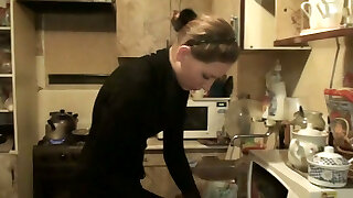 Mi Hermosa Madrastra Limpiando la Cocina Aproveche para Verle su Enorme Butt y hacerle Trampa para Agarrarla por el Donk