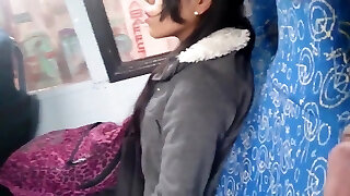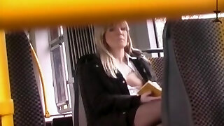 esibizionista mostra la manopola al femminile in autobus