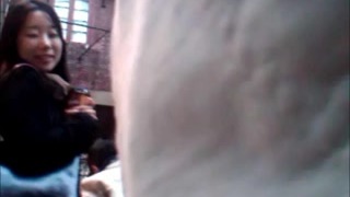 L'uomo sta shock ragazza Asiatica con il suo cazzo nudo