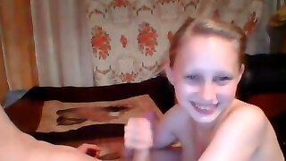 Stepsister Jerks Off Her Brother's Spear And Lets Him Jism On Her