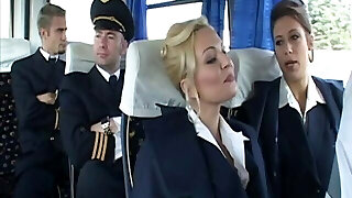 Hot Stewardess fuck big dick pilot in scorching threesome