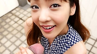 Alluring Japanese lady Noeru Mitsushima swallows a hard hai