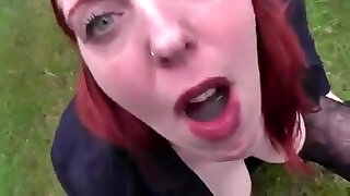 Redhead Deutsch milf works that big cock with her booty and mouth in the park