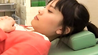 A dark-haired Asian sweetie sex-acts with a coworker.